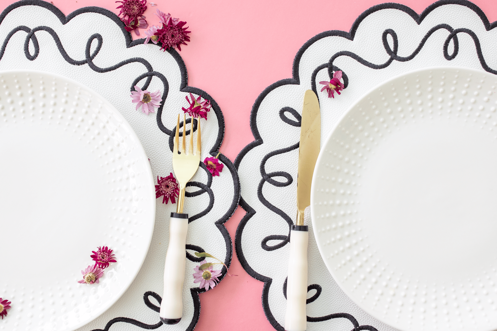 Bold embroidery patterns and cut scalloped borders, add a touch of unique sophistication to your table.
